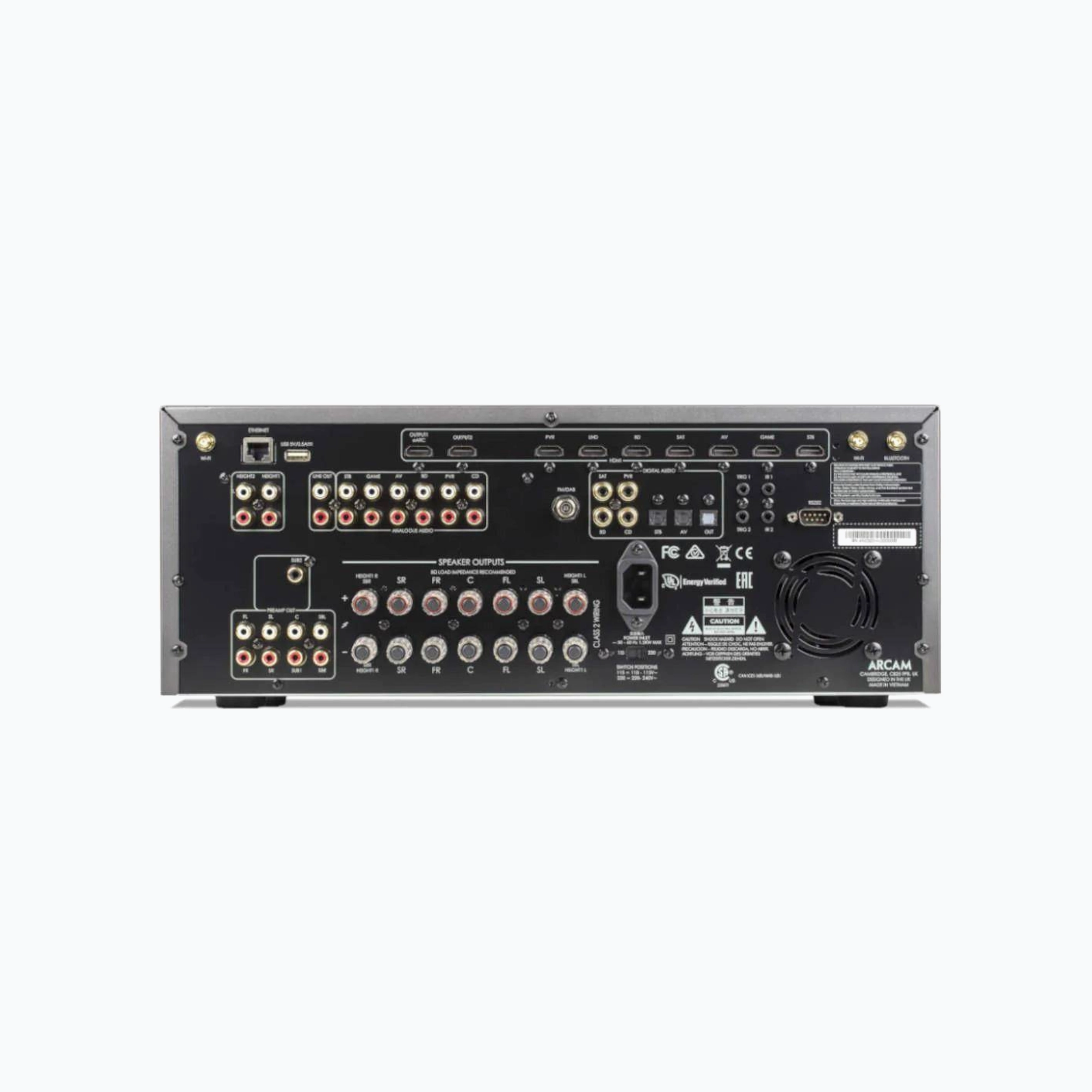 The Arcam AVR11 is a premium, reference-grade 7.14-channel decoding AV receiver designed for uncompromising home theater performance. Featuring Class AB amplification with a toroidal transformer, Dolby Atmos, DTS:X, IMAX Enhanced, Auro-3D decoding, Dirac Live room correction, dual ESS audiophile DACs, and full 8K HDMI 2.1 support, it delivers powerful, precision-tuned cinematic sound with advanced streaming and system integration.