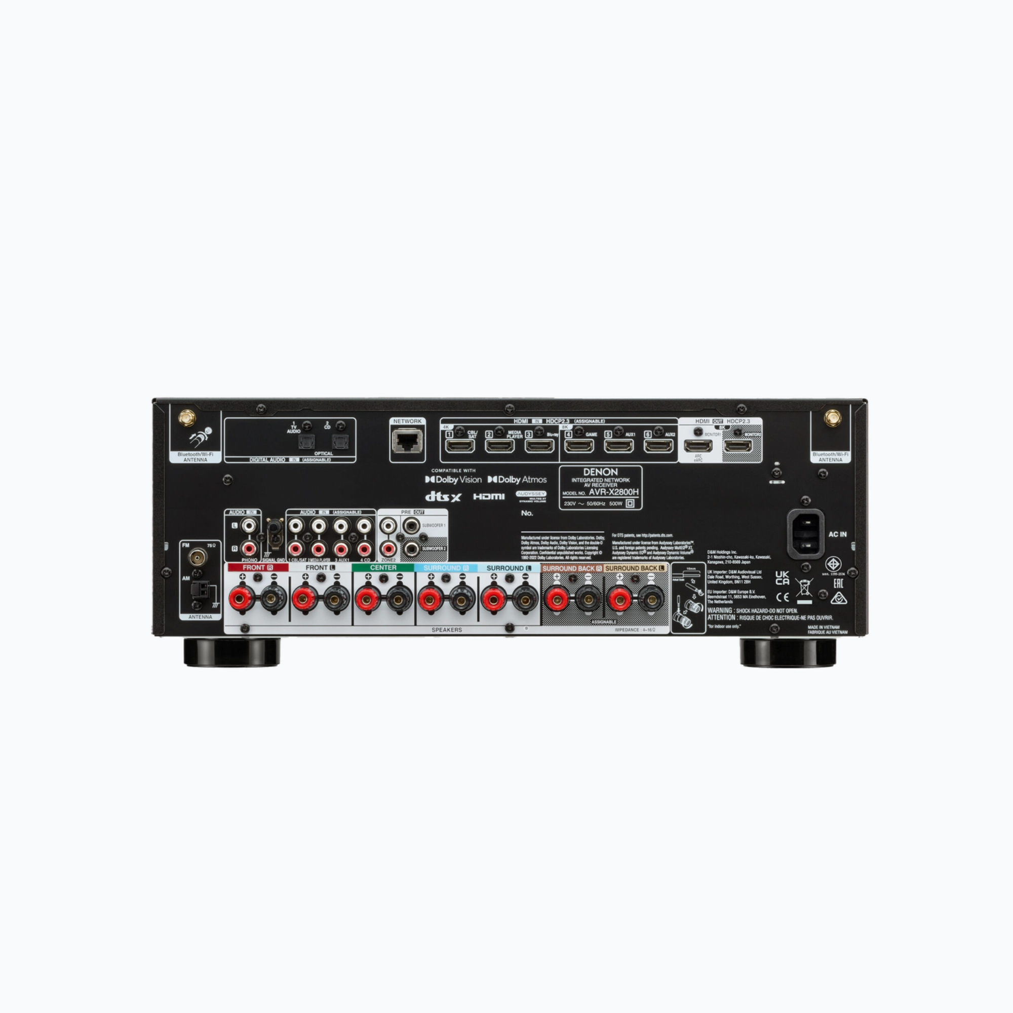 The Denon AVR-X2800H is a premium 7.2-channel 8K AV receiver engineered for immersive, future-ready home theater performance. Supporting Dolby Atmos, DTS:X, 8K/60 Hz, and 4K/120 Hz HDMI passthrough and upscaling, plus HEOS Built-in, Wi-Fi, and Bluetooth, it delivers powerful cinematic sound with seamless multi-room streaming and smart voice control integration.