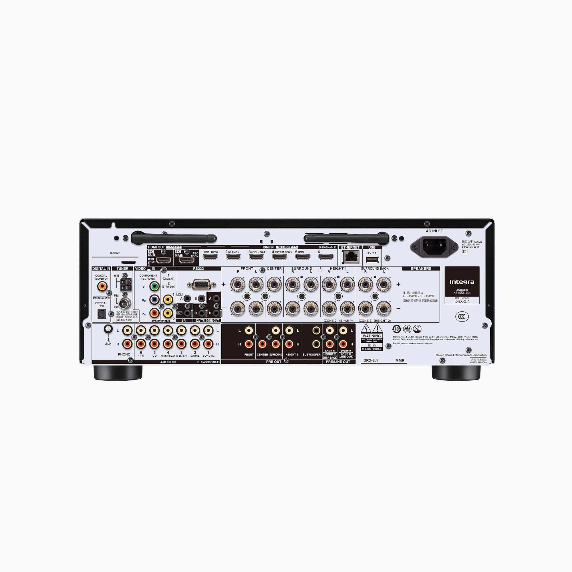The Integra DRX 3.4 is a premium 9.2-channel AV receiver built for reference-grade home theater performance. Featuring Dirac Live room correction, Dolby Atmos, IMAX Enhanced, THX certification, and advanced 8K HDMI connectivity, it delivers powerful, precision-tuned cinematic sound with audiophile-grade components and seamless smart integration.