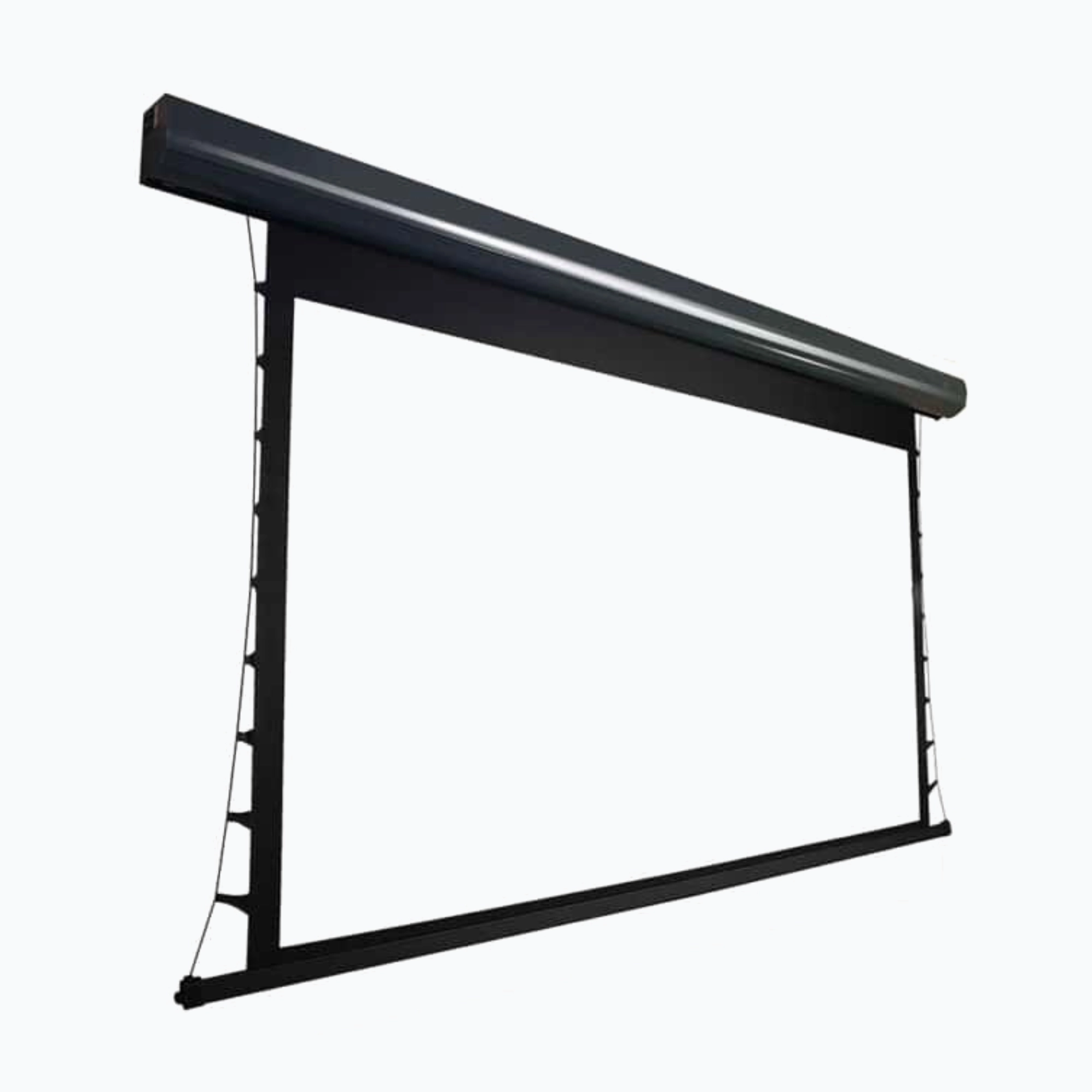 A motorized tab tension screen uses a side-tension system to keep the screen surface perfectly flat at all times. Ideal for high-resolution projection, it ensures wrinkle-free visuals with consistent image quality while offering the convenience of smooth, motorized operation.